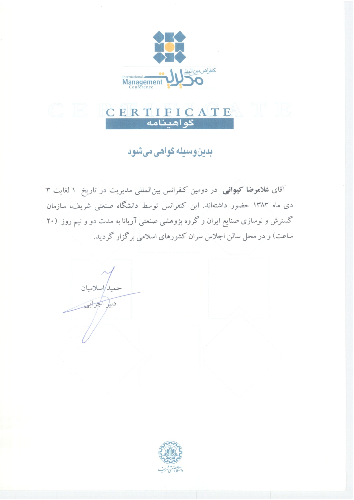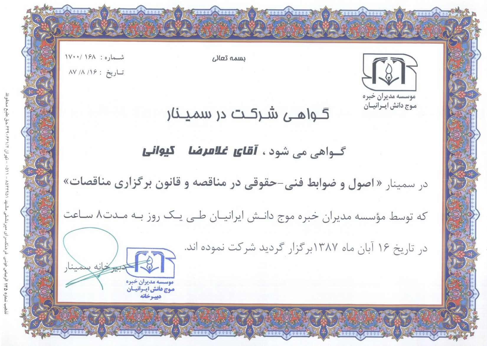 تقدیرنامهها و گواهینامهها